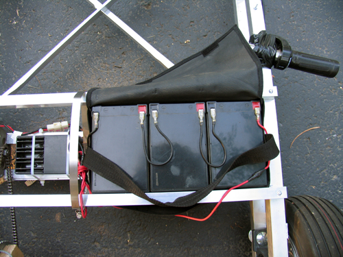 Three 7 Ah lead acid batteries power this 36v beast… they’re heavy.