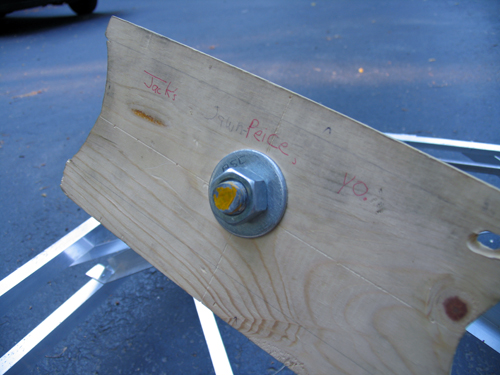 The bain of my existance… the blocks holding the rear sproket are badly made and thus wobble. The axle (1″) has a keyway in it, and the sproken has a 2″ hole. Logically, we’d make spacers to simply hold it in the center, and the spacers would fit the keyway to spin it. I built two of these out of hard wood. I cut the 1″ and keyway with a coping saw (which was a hard process), screwed the whole thing together, and slapped the chain on. It looked perfect. As soon as I touched the throttle, the keyways sheared off (wood doesn’t deal with shear stress very well) and the whole unit simply spun.