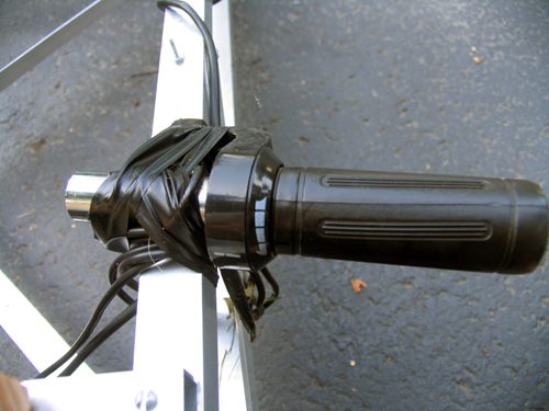 The throttle from the scooter. Yes, it is taped to the side. I haven’t had a chance to fasion some sort of pedal yet.